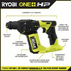 Power Tools NZ RYOBI 18V ONE+ HP COMPACT BRUSHLESS 5/8 SDS-PLUS ROTARY HAMMER Z246TD37