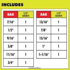 Accessories NZ RYOBI 11 PC. SAE 1/2 Drive Deep Impact Socket Set Z246TD799