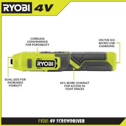 Power Tools NZ RYOBI 4-Volt Lithium-Ion Screwdriver Kit Z246TD66