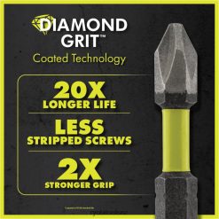 - Diamond Grit Holds Tight To Fastener For 2X Stronger Grip