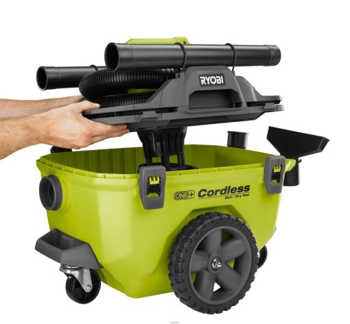Introducing the new RYOBI ONE+ 6 Gal. Wet/Dry Vacuum. Now, you can experience corded performance with cordless convenience. This vacuum has a powerful 80 CFM. The multi-size no-tip wheel design and 360 degree mobility keeps your vacuum balanced when rolling over cords and thresholds. On-board accessory storage conveniently holds your crevice tool, floor nozzle and extension wands, while the hose dock provides a simple solution to storing your hose when not in use. Multiple carrying handles allow for easy carrying, and the removable top makes emptying dust, debris and liquids quick and mess-free. The compact design allows for space-saving storage when not in use. Best of all, the RYOBI ONE+ wet/dry vacuum is part of the RYOBI ONE+ family of over 100 tools.