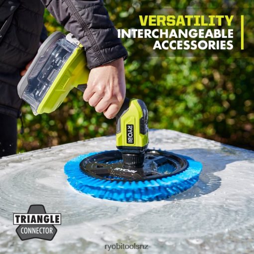 RYOBI introduces the 18V ONE+ Cordless Power Scrubber. As the industry’s most powerful handheld scrubber, this product is able to power through tough stains and grime. All RYOBI scrubbers have an IPX7 Water Resistance Rating, allowing our cleaning tools to be submerged in up to 3 feet of water for 30 minutes. This 18V ONE+ Cordless Power Scrubber is compatible with additional interchangeable triangle connection brushes in the RYOBI Cleaning Accessories lineup. Backed by the RYOBI 3-Year Manufacturer’s Warranty, the RYOBI 18V ONE+ Cordless Power Scrubber includes an 18V ONE+ 2Ah Lithium Battery, an 18V ONE+ Charger, a 6″ Medium Stiffness Bristle Brush and an operator’s manual.