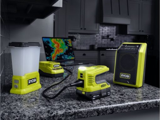 Be ready when the storm strikes with the RYOBI 18V ONE+ Storm Kit – 150W Battery Power Source, Compact Radio, LED Area Light, 18V ONE+ 2Ah Lithium Battery, charger and bag. Use the 150 Watt Power Source to charge your small electronics through AC and USB-A charging ports. Stay up to date on the latest news with the Compact Radio’s FM radio mode or connect your device using Bluetooth mode. Light your space with the LED Area Light providing 850 lumens and 360 degree illumination. All 3 of these 18V ONE+ solutions are ready to help you weather the storm, and each product is equipped with USB-A charging ports. Best of all, this kit is part of the RYOBI 18V ONE+ System of over 280 Cordless Products that all work on the same battery platform. This 18V ONE+ Storm Kit is backed by the RYOBI 3-Year Manufacturer’s Warranty and includes (1) RYi150BG 18V ONE+ 150W Power Source, (1) PCL600 18V ONE+ Compact Radio, (1) PCL662 18V ONE+ LED Area Light, (1) PBP006 18V ONE+ 2Ah Lithium Battery, Charger, Bag and Operator’s Manuals