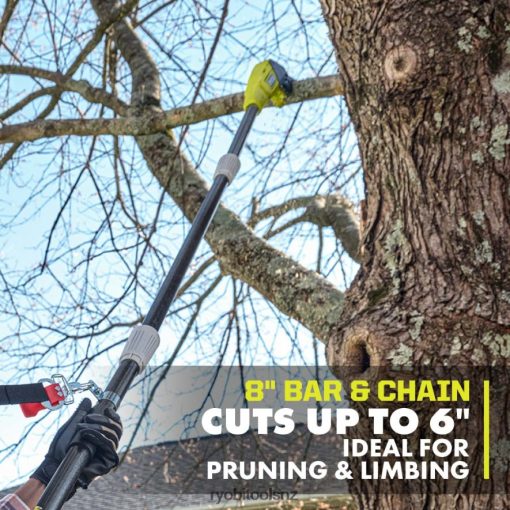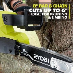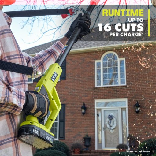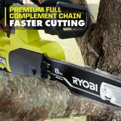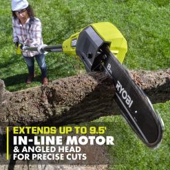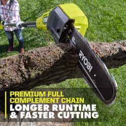 Enter the RYOBI 18V ONE+ System with the 18V 8” Pole Saw and 8” Pruning Chainsaw Kit. The powerful motor provides the ability for these saws to cut up to 6” branches and logs, perfect for pruning and light limbing. With the included battery, you’ll get up to 16 cuts per charge on the pole saw and up to 23 cuts per charge on the pruning chainsaw. The premium full complement chain delivers longer runtime and faster cutting. Experience exceptional performance with just the pull of a trigger, without the hassle of gas or cords. Achieve precise cuts with the pole saw’s angled head, 9.5′ extension and in-line motor. For added convenience, both tools have an oil-free design, tooled chain tensioning, and on-board tool storage. Both the pole saw and pruning chainsaw are compatible with the RY8C1 8” Replacement Chain. Best of all, they are part of the RYOBI ONE+ system where any 18V ONE+ battery works with any 18V ONE+ product. This 18V ONE+ 8in Pole Saw & 8in Pruning Chainsaw Kit is backed by the RYOBI 3-Year Manufacturer’s Warranty and includes 18V 2Ah Battery, 18V Charger, Scabbard, Combination Wrench, SAFE-T-TIP, Handle Pole, Intermediate Pole, Combination Wrench, Scabbard, Shoulder Harness, and Operator’s Manuals.