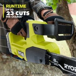 Expand your RYOBI 18V ONE+ System with the 18V ONE+ 8” Pruning Chainsaw. The 8” bar and chain and powerful motor tackles branches up to 6”, making it ideal for pruning and light limbing. With up to 23 cuts per charge and a premium full complement chain, the pruning chainsaw delivers longer runtime and faster cutting. Experience exceptional performance with just the pull of a trigger, without the hassle of gas or cords. For added convenience, it has an oil-free design, tooled chain tensioning, and on-board tool storage. It’s compatible with the RY8C1 8″ Replacement Chain. Best of all, it is part of the RYOBI ONE+ system where any 18V ONE+ battery works with any 18V ONE+ product. This 18V ONE+ 8in Pole Saw is backed by the RYOBI 3-Year Manufacturer’s Warranty and includes a Combination Wrench, Scabbard, SAFE-T-TIP, and Operator’s Manual.