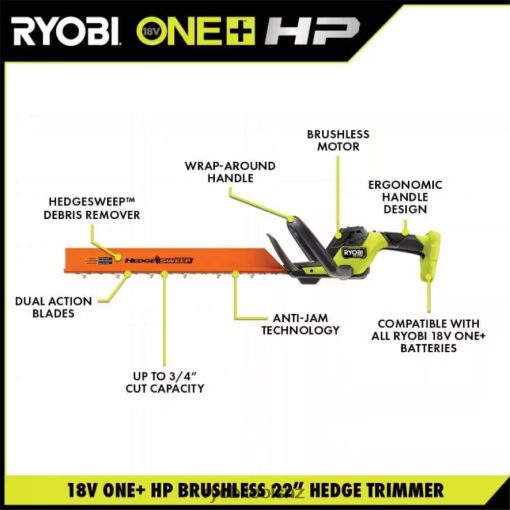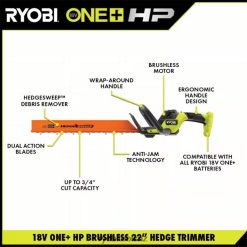 Outdoor NZ RYOBI 18V ONE+ HP Brushless 22 Hedge Trimmer with 2Ah Battery and Charger Z246TD334