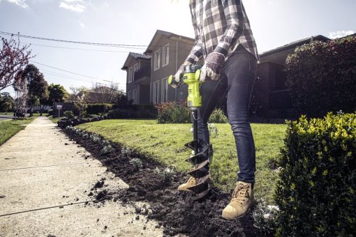 The RYOBI 18V HP Auger is lightweight, powerful and gives you the convenience of battery power. Simply insert the 18V battery and pull the trigger to start. The premium HP brushless motor provides more power, longer runtime, and a longer motor life. At under 16 lbs. this Auger is 50% lighter weight than the average gas unit. Equipped with advanced technology to reduced vibration for increased comfort as you work, and the anti-kickback system provides added safety when working around rocks and roots. This auger also features forward and reverse functions and is ideal for light cultivation, preparing soil, and digging for fences and landscaping. The quick connect capability allows for easy bit change to other accessory auger bits available for sale. This tool is backed by a 3-year Limited Warranty.