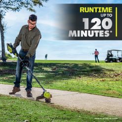 Enhance your RYOBI 18V ONE+ System with the 18V ONE+ HP Brushless 13” String Trimmer/Edger with 1.5X more power. ONE+ HP technology combines a brushless motor, advanced electronics, and high performance lithium technology to provide more power, durability, and speed with up to 120 minutes of runtime. Experience exceptional performance with just the pull of a trigger. Tackle thick weeds around the yard with an adjustable 11” to 13” cut swath. The auto-feed head allows for easy string reload and advancement of line with each pull of the trigger. For ultimate convenience, turn your string trimmer into an edger with the simple twist-to-edge function for clean, precise cuts around your driveway and sidewalks. Easily control your trimming along fences, mailboxes, and flower beds using the variable speed trigger. Best of all, it is part of the RYOBI ONE+ system where any 18V ONE+ battery works with any 18V ONE+ product. This 18V ONE+ HP Brushless 13” String Trimmer/Edger is backed by the RYOBI 3-Year Manufacturer’s Warranty and includes P20102 18V ONE+ HP 13″ String Trimmer/Edger, Grass Deflector, Front Handle, and Operator’s Manual. Battery and charger sold separately.