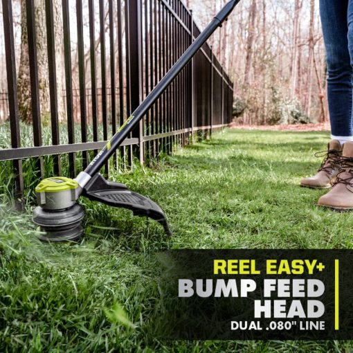 The RYOBI 18V ONE+ HP Brushless Whisper Series 15″ String Trimmer truly harnesses the power of 18V ONE+. It has a brushless motor for maximum power and durability and as part of our WHISPER SERIES, it is among our quietest range of products giving you the power without the hassle of noise. This trimmer is equipped with the REEL EASY+ bump feed Head with SPEED WINDER crank which can be reloaded in 60-seconds or less. The variable speed trigger and 2-speed switch deliver increased control for any application. The adjustable 13″ to 15″ cutting width allows you to optimize your trimmer for increased runtime or a wider cutting width. This lightweight and well-balanced design also has a front handle for comfort and the trimmer is equipped with a 6.0 Ah battery for extended runtime. The battery is compatible with the RYOBI 18V ONE+ system. Backed by a 3-year warranty.