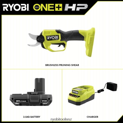 Quickly tidy up around your yard and garden with the RYOBI 18V HP Cordless Pruning Shear by replacing manual pruning with just the pull of a trigger. The ONE+ HP Technology along with the brushless motor deliver 1.5X faster cutting. It is ideal for light pruning and limbing, and the bypass blades make clean, complete cuts up to 1″ in diameter. For your convenience and comfort, there is an on-board LED work light and a soft grip handle. The RYOBI 18V HP Cordless Pruning Shear, 18V 2Ah battery, and charger are compatible with all RYOBI 18V ONE+ products. This tool and battery are backed by a 3-year warranty.