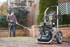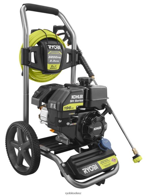The RYOBI 3200 PSI Pressure Washer is the perfect for completing tough jobs quickly. The powerful Kohler 196 cc Engine delivers 3200 PSI of force to blast away dirt, grime, oil, and other stains. The durable hand truck frame and 12 in. wheels make transportation easy. The 35 ft. non-marring high pressure hose provides 40% longer reach needed to clean areas that are difficult to access. The on-board detergent tank offers hassle-free cleaning by eliminating the need to drag a bucket and hose behind you. For added convenience, it is equipped with a 5-in-1 quick-change nozzle, which allows you to quickly change spray patterns. The RYOBI 3200 psi Gas Pressure Washer is backed by a 3-year tool and engine warranty.