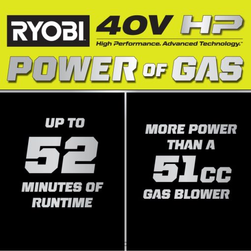 - 40V HP Technology Delivers More Power than a 51cc Gas Blower
