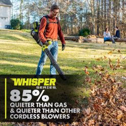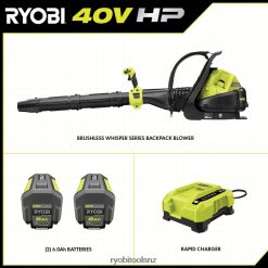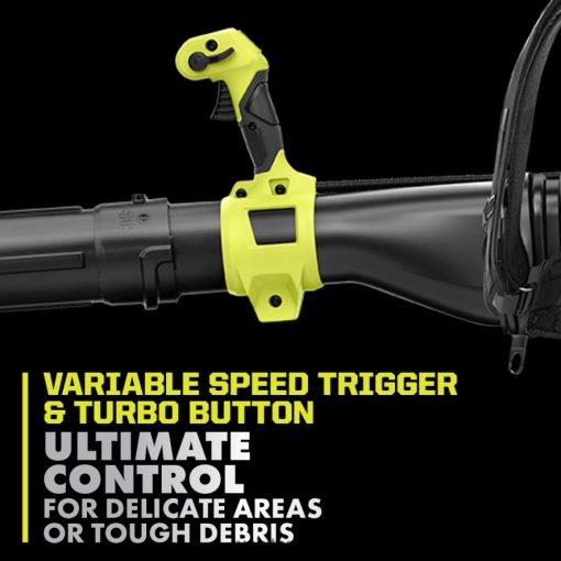 Enhance your 40V System with the 40V HP Cordless Backpack Blower Kit. Using 40V HP technology, this backpack blower delivers more power than a 51cc gas blower, making it a true gas replacement. The HP Backpack Blower delivers up to 52 minutes of runtime with the included (2) 40V 6Ah lithium batteries. 40V HP technology combines a brushless motor, advanced electronics and high-performance lithium technology, to easily tackle wet leaves and heavier lawn debris with 730 CFM and 165 MPH. That is gas performance with just the pull of a trigger. No gas, no maintenance, no hassle. Designed with noise dampening foam, this Whisper Series blower is engineered to be 85% quieter than gas and even other cordless blowers, so you can work anytime without disturbing others. A variable speed trigger and turbo button allow you to control the output of air so you can dial back when in delicate areas like blowing leaves from mulch beds and engage the turbo button when clearing tougher debris. Add on the customizable speed tip for increased air speed. Best of all, it is part of the RYOBI 40V System where any 40V battery works with any 40V product. This 40V HP Blower kit is backed by the RYOBI 5-year manufacturer’s warranty and 3-year manufacturer’s battery warranty. This kit includes the RY404017 40V Backpack Blower, (2) OP40605 40V 6Ah Batteries, OP406 40V Rapid Charger, Blower Tubes, Speed Tip, and Operator’s Manuals.