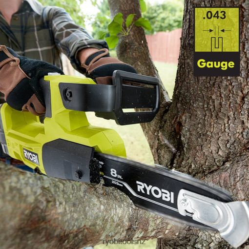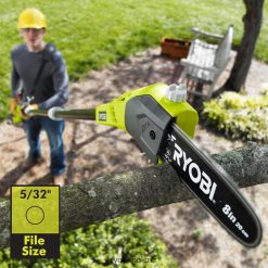 The RYOBI 8″ Replacement Chain is the best solution for replacing your damaged or dull 8″ chain. It is best for gas and cordless saws, and compatible with most brands. The chain has a .043″ gauge, 3/8″ low profile pitch, 33 drive links, and 5/32″ file size.