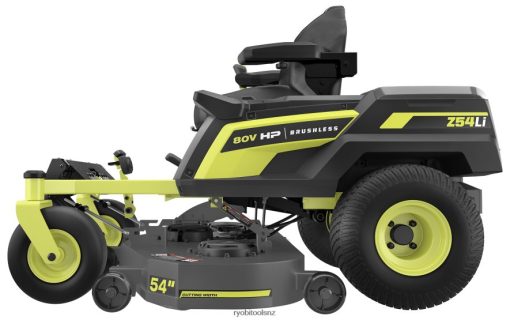 Introducing RYOBI’s first lithium-ion battery powered zero turn riding mower, the RYOBI 80V HP 54″ Lithium Electric ZTR*. HP Technology and 80V batteries combine to deliver the power equivalent of a 42 horsepower gas engine*, while eliminating the hassle and maintenance of a gas mower. This rider cuts up to 4 acres per charge with the help of 5 brushless motors, (3) 80V 10Ah batteries, and (4) 40V 12Ah batteries, with a Hyper Charger that fully recharges in 5 hours so you’re ready for your next job. The revolutionary iDrive system uses an intuitive one-handed joystick steering to maneuver around objects more easily than a traditional ZTR. The innovative LCD screen displays runtime, battery life, and cut/drive speed while in use, while the Riding Mower app allows you to monitor charge time and battery life remotely. This riding mower features the CROSS CUT multi blade system, providing superior cutting & mulching performance, while the 12-point height adjustment allows you to select the perfect cutting height between 1.5″ and 4.5″. The rubber side discharge chute makes it easy to maneuver around landscaping so users are not restricted by where they can cut. Designed with comfort and convenience in mind, this mower features premium seat suspension, 2 USB ports to charge phones, a storage compartment, and LED headlights. Mobile Service available in select regions. If your riding mower requires attention, a certified RYOBI support technician can diagnose & service right from your home. Some services may require you to bring your mower to one of the 300+ service centers nationwide. Lawn maintenance will never be the same thanks to the RYOBI 80V HP Brushless 54″ Lithium Electric Zero Turn Riding Mower.