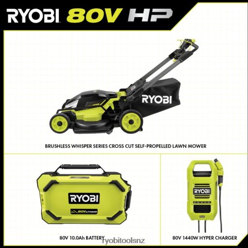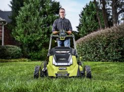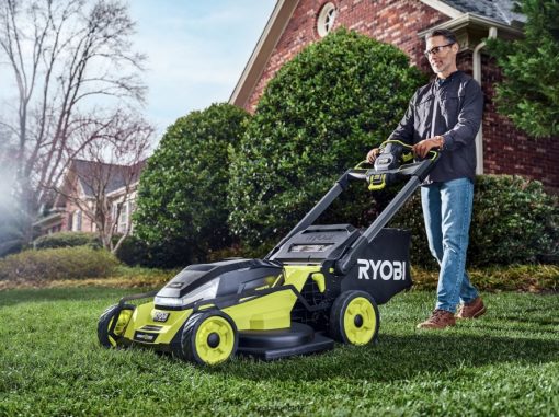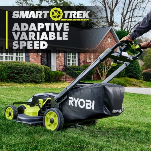 The RYOBI 80V HP Brushless 30″ WHISPER SERIES CROSS CUT Lawn Mower utilizes 80V HP technology to deliver a more efficient cutting experience than gas with the ease of RYOBI 80V battery power. The 80V HP technology delivers 35% more power for gas performance, making this new 30″ Lawn Mower more powerful than a 223cc gas mower. As part of the WHISPER SERIES, RYOBI’s quietest lineup of products, this mower is 70% quieter than a gas mower. With a simple push-button start, users can tackle up to 1 acre with up to 90 minutes of runtime on the included RYOBI 80V 10Ah lithium battery. The external fuel gauge shows the remaining battery life left while mowing, and when it is time to recharge, the included 80V Hyper Charger can recharge the battery in less than one hour. This mower is part of the RYOBI 80V HP brushless family of cordless products. When the job is complete, easy lift bag removal makes emptying grass clippings quick and convenient, one touch folding handles allow this mower to be stored easily out of the way in the garage or shed between mowing sessions. An 11″ high wheel design and high-intensity LED headlights combined with WHISPER SERIES engineering allow users to mow any time from dusk to dawn. This mower is backed by a five-year manufacturer warranty.