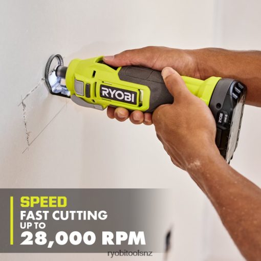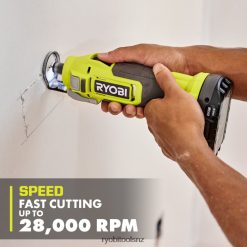 Expand your RYOBI 18V ONE+ System with the RYOBI 18V ONE+ Cut-Out Tool. The powerful motor provides up to 28,000 RPM while also delivering over 190 cuts per charge. Equipped with an on-board LED worklight you will experience enhanced cut visibility. This tool accepts 1/8″ and 1/4″ bits while also incorporating quick and easy bit changes with built-in wrench storage. The 18V ONE+ Cut-Out Tool has a lock-on switch for continuous cutting. Best of all, it is part of the RYOBI ONE+ System of over 280 Cordless Products that all work on the same battery platform. This 18V ONE+ Cut-Out Tool is backed by the RYOBI 3-Year Manufacturer’s Warranty and includes (1) 18V ONE+ Cut-Out Tool and operator’s manual. Battery and charger sold separately.