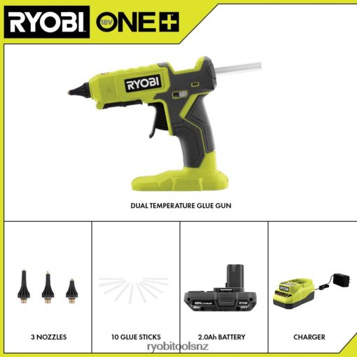 - Includes: 2.0Ah Battery, 18V Charger, Nozzles, and Glue Sticks