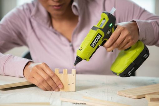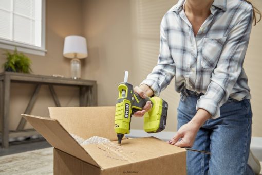 RYOBI introduces the 18V ONE+ Cordless Dual Temperature Glue Gun Kit with 2.0Ah Battery and 18V Lithium-Ion Charger. This glue gun is the perfect addition to your ONE+ collection. The included interchangeable tips keep you prepared for any project that comes your way. The dual temperature settings provide added versatility, allowing you to heat up to 248 degreeF on low for heat sensitive materials, or heat up to 320 degreeF on high for adhesives like construction glue. This tool is compatible with all 1/2″ full size glue sticks, and 10 are included so you can get a jump start on your current project. The Fold-Out Drip Tray will ensure you always have a clean work space. The on-board LED indicator light will change color to let you know when the tool is ready for use after a fast two minute heat up time. The included battery and charger are compatible with all RYOBI 18V ONE+ Tools. This tool is backed by the RYOBI 3-Year Manufacturer’s Warranty and includes the 18V ONE+ Dual Temperature Glue Gun, Standard Nozzle, Extended Precision Nozzle, Spreader Nozzle and (10) General Purpose Glue Sticks, 2.0Ah Battery, 18V Lithium-Ion Charger, and operator’s manual.