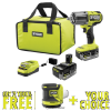 RYOBI introduces the 18V ONE+ HP Brushless ” High Torque Impact Wrench Kit with FREE 18V ONE+ Compact Router and FREE select tool of choice. ONE+ HP Technology delivers more power, runtime, durability and speed utilizing brushless motors, advanced electronics and high performance lithium technology. This wrench features a brushless motor delivering up to 1,170 ft-lbs. of breakaway torque and 7X faster removal speed to excel in demanding applications. The 4-Mode control board provides low/medium and high speeds while Auto Mode prevents overtightening in forward and controlled removal in reverse. The die cast gear case has a greater durability in the harshest work environments. This impact wrench is designed with efficiency in mind, the anvil with friction ring provides quick socket changes and the Tri-Beam LED worklights allow for clear workspace visibility. This partnership of power and performance make this the perfect solution for any automotive shop. Part of the RYOBI ONE+ System – Any 18V ONE+ Battery Works with Any 18V ONE+ Product. This 18V ONE+ HP Brushless 4-Mode 1/2 in. High Torque Impact Wrench Kit is backed by the RYOBI 3-Year Manufacturer’s Warranty and includes PBLIW01 18V ONE+ HP Brushless 4-Mode 1/2” High Torque Impact Wrench, (2) PBP004 18V ONE+ 4Ah Lithium HIGH PERFORMANCE Batteries, Charger, Bag, and operator’s manual with FREE PCL424 18V ONE+ Compact Router and FREE select tool of choice.
