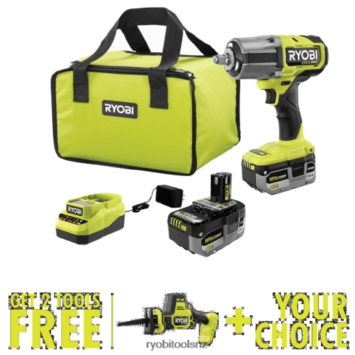 RYOBI introduces the 18V ONE+ HP Brushless ” High Torque Impact Wrench Kit with FREE 18V ONE+ HP Compact Brushless One-Handed Reciprocating Saw and FREE select tool of choice. ONE+ HP Technology delivers more power, runtime, durability and speed utilizing brushless motors, advanced electronics and high performance lithium technology. This wrench features a brushless motor delivering up to 1,170 ft-lbs. of breakaway torque and 7X faster removal speed to excel in demanding applications. The 4-Mode control board provides low/medium and high speeds while Auto Mode prevents overtightening in forward and controlled removal in reverse. The die cast gear case has a greater durability in the harshest work environments. This impact wrench is designed with efficiency in mind, the anvil with friction ring provides quick socket changes and the Tri-Beam LED worklights allow for clear workspace visibility. This partnership of power and performance make this the perfect solution for any automotive shop. Part of the RYOBI ONE+ System – Any 18V ONE+ Battery Works with Any 18V ONE+ Product. This 18V ONE+ HP Brushless 4-Mode 1/2 in. High Torque Impact Wrench Kit is backed by the RYOBI 3-Year Manufacturer’s Warranty and includes PBLIW01 18V ONE+ HP Brushless 4-Mode 1/2” High Torque Impact Wrench, (2) PBP004 18V ONE+ 4Ah Lithium HIGH PERFORMANCE Batteries, Charger, Bag, and operator’s manual with FREE PSBRS01 18V ONE+ HP Compact Brushless One-Handed Reciprocating Saw and FREE select tool of choice.