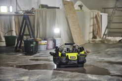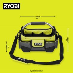 The RYOBI 13″ Tool Tote is designed to withstand the toughest working conditions with the heavy duty 1680D pockets, durable molded base, and water resistant material. With 17 pockets and an integrated tape measure clip there is a place for everything to keep you organized. The comfortable padded shoulder strap and stow-away handle provides a seamless experience as you move from place to place.