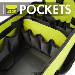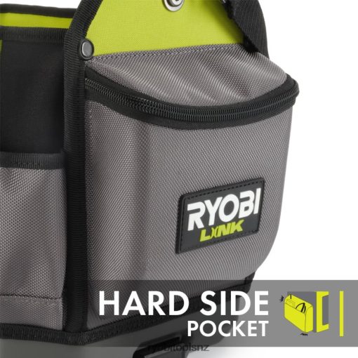 The RYOBI LINK Modular Storage System is revolutionizing the storage industry, enabling you to Organize, Access and Transport your life. The RYOBI LINK 17″ Tool Tote is designed to handle the toughest of situations. The 60 lb. weight capacity, heavy duty 1680D pockets and water resistant material keep your tools protected in transport. Organization is endless with 42 interior and exterior pockets and an adjustable divider. The hard side pocket provides additional protection for phones or glasses while the integrated level straps and tape measure clip keep those items easily reachable. Carry using the top handle or utilizing the included padded shoulder strap. The pivoting handle can be easily stowed out of the way. Best of all, it is part of the RYOBI LINK Modular Storage System line of products that use the same locking technology to seamlessly connect your mobile and stationary storage needs. Own your space with RYOBI LINK Modular Storage System.