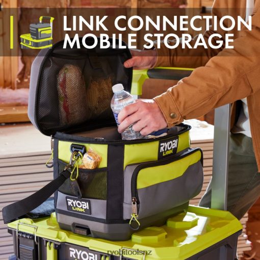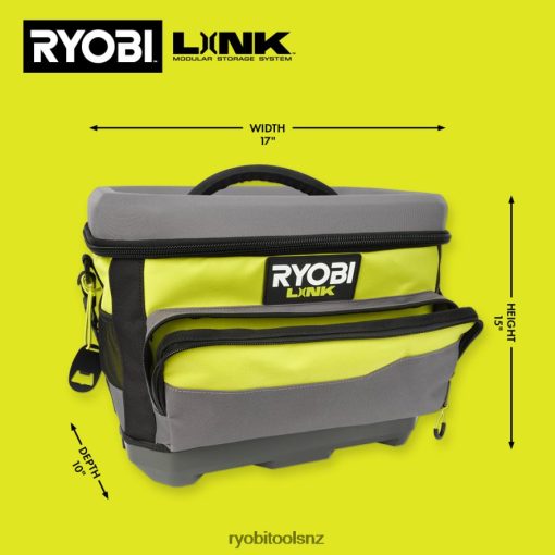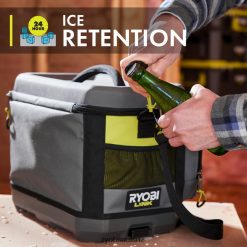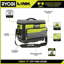 The RYOBI LINK Modular Storage System is revolutionizing the storage industry, enabling you to Organize, Access and Transport your life. The RYOBI LINK 17″ Soft Sided Cooler has a sweat proof design, with 24 hour ice retention and a 24 can capacity. With this cooler you’ll be set for any jobsite or adventure, from the beach to camping. The insulated lid pocket is the perfect space to keep items, like food, separated and chilled. The 3 exterior pockets easily store additional items, like tool storage. Not to mention, the included bottle opener is attached so you’re never left empty handed. Carry using the comfort top handle or utilize the included padded shoulder strap. This cooler can be easily attached to your mobile tool box to travel with you anywhere.Best of all, it is part of the RYOBI LINK Modular Storage System line of products that use the same locking technology to seamlessly connect your mobile and stationary storage needs. Own your space with RYOBI LINK Modular Storage System.