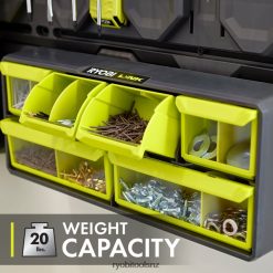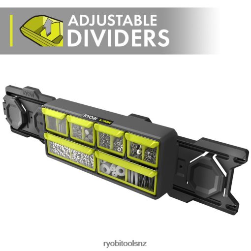 The RYOBI LINK Modular Storage System is revolutionizing the storage industry, enabling you to Organize, Access and Transport your life. The RYOBI LINK Wall Small Parts Organizer is designed with a 20 lb. load capacity to fit various small parts. The adjustable dividers allow for maximum organization, customized to your needs. The bins can seamlessly tilt out for full access or can be completely removed to be closer to your project. Always know where items are with the clear bin window for easy identification.Best of all, it is part of the RYOBI LINK Modular Storage System line of products that use the same locking technology to seamlessly connect your mobile and stationary storage needs. Own your space with RYOBI LINK Modular Storage System.