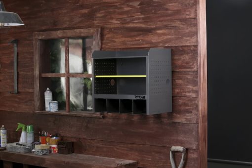 This storage system provides a simple way to keep your tools and accessories organized. The side cord keeper provides added convenience and protection for your batteries and chargers. The open concept allows for clear visibility of all tools and accessories. This cabinet can be easily mounted on a garage or workshop wall.